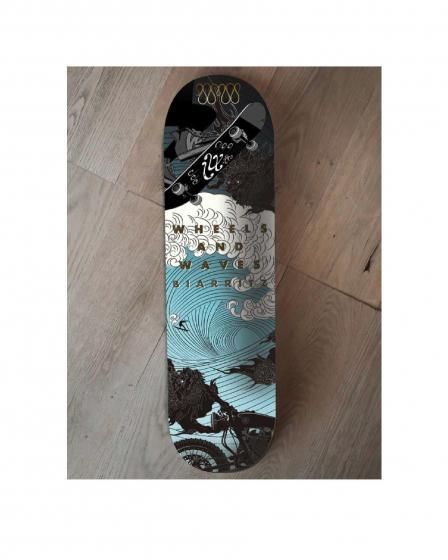 「Wheels and Waves(ウィールズ・アンド・ウェーブス)」は、モーターサイクル、サーフィン、スケートボード、アート、音楽を融合させた、世界的なカルチャーフェスティバルです。フランス・ビアリッツで開催されるこのイベントには、自由な精神と創造性を愛する人々が世界中から集まり、ジャンルや国境を越えた交流が生まれます。そんな唯一無二のイベントの「顔」となる公式ポスターを手がけることは、非常に名誉ある役割です。